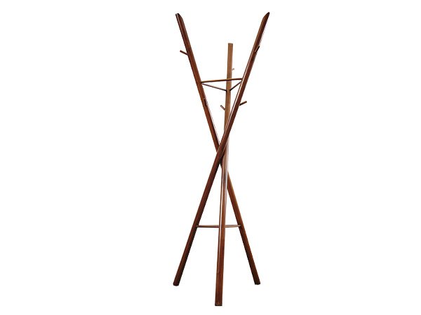 Perchero de pie, 3 lados, fabricado en madera.